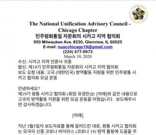 평통 시카고협의회, 모국 코로나 방역활동 지원을 위한 모금운동 마감